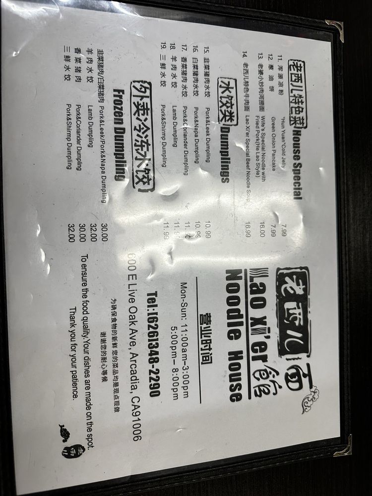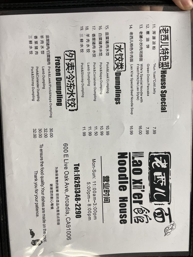 Welcome to Lao Xi Noodle House, a hidden gem nestled in Arcadia, California. Specializing in authentic Chinese noodles and salads, this restaurant offers a delightful menu focused on handmade dishes that reflect rich culinary traditions.